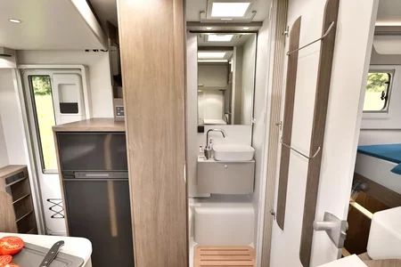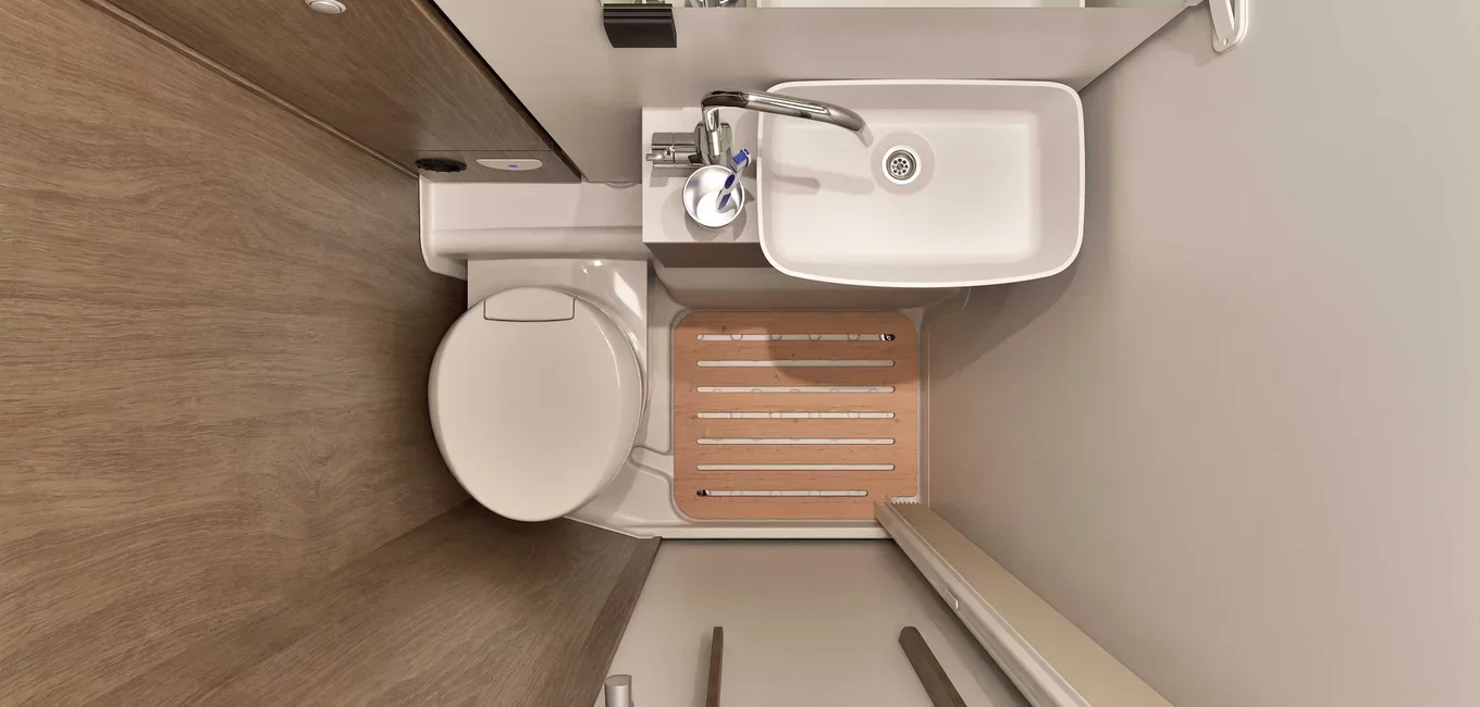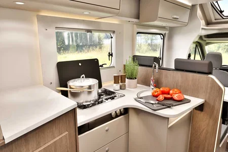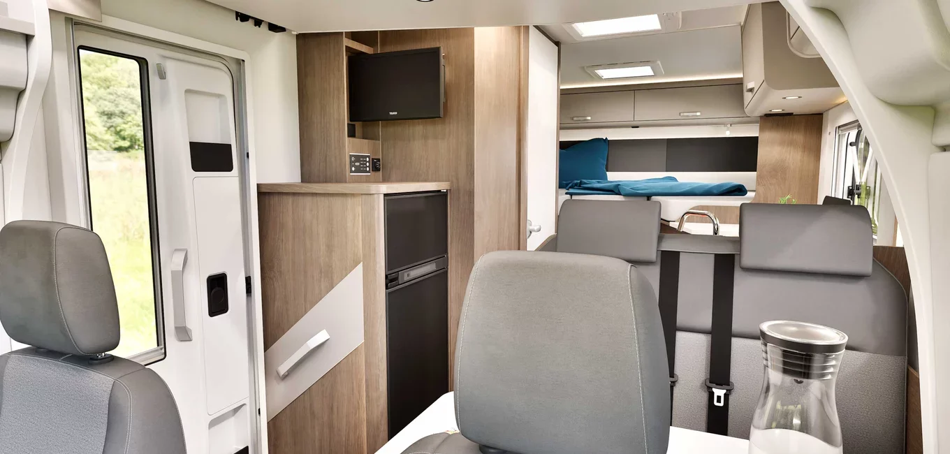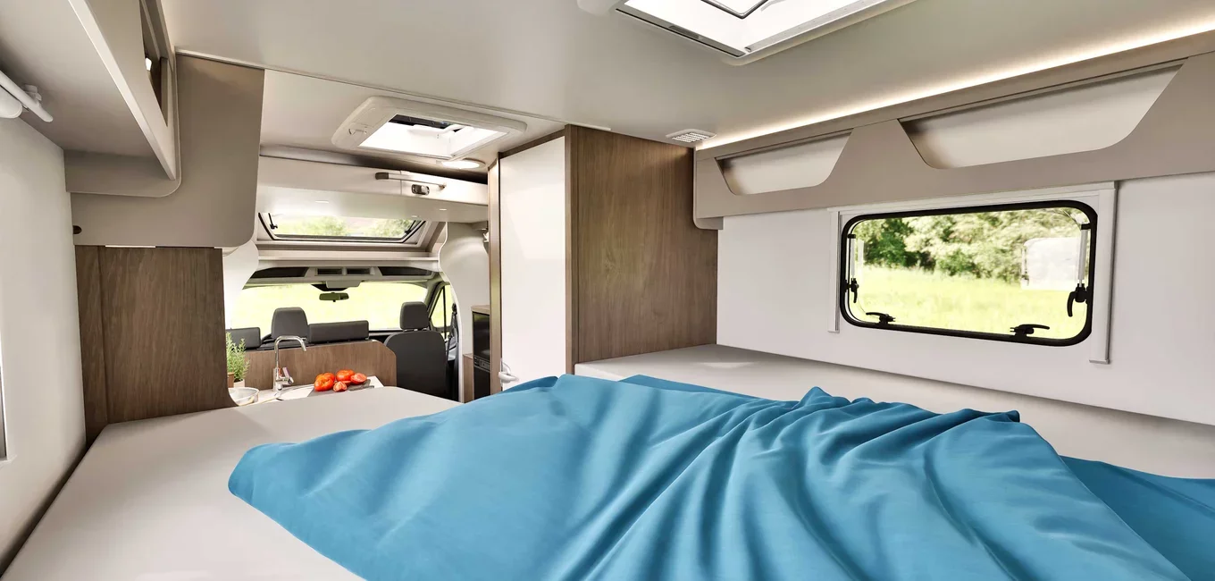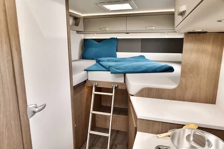 4 Schlafplätze längs im Heckbett, 2 quer im Hubbett